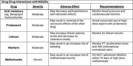 Keywords: NSAIDs DDI.jpg en NSAIDs Drug Drug Interaction Table by Group 2 own COP2013G02 2010-02-01 Tables information Wikibooks Pharmacology