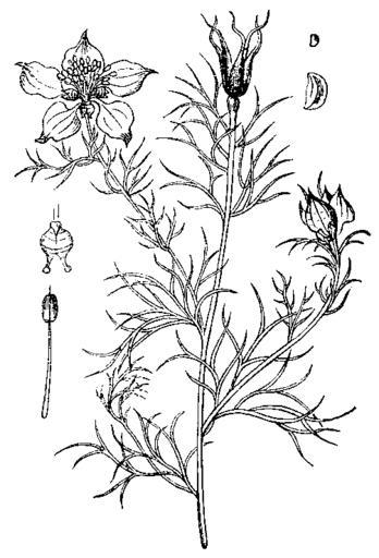 Keywords: Nsr-slika-192.png Slika 192 Njivska črnúha Nigélla arvénsis Scan from Naše škodljive rastline 1892 original from 1892 scanned in 2008 Martin Cilenšek public domain PD-old Naše škodljive rastline Nigella arvensis - botanical illustrations