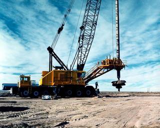 Keywords: NTS - Big Hole Drilling 004.jpg en This equipment at the U S Department of Energy's Nevada Test Site is capable of augering soil down to depth of 150 ft Here it is suspended from a 150 ton crane The rotary auger is driven by two separate motors suspended from the raised platform It is used to start some vertical bore holes from underground nuclear tests 812 NF-4558 Federal Government of the United States PD-USGov Unidentified trucks Crane trucks Drilling machines Nevada Test Site Big Hole Drilling Semi-trailer trucks |