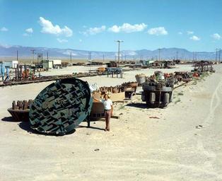 Keywords: NTS - Big Hole Drilling 005.jpg en Nevada Test Site Big hole Drilling Equipment that dwarfs normal oil field gear is capable of drilling holes up to 120 inches in diameter and 6 000 feet deep A drill string often weights 300 000 pounds when fully loaded 811 NF-424 Federal Government of the United States PD-USGov Drilling machines Nevada Test Site Big Hole Drilling |