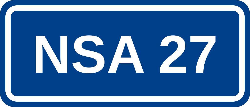 | Keywords: Nuova Strada Statale 27 Italia.svg  Immagine Nuova Strada ANAS 27 Italia Transferred from http //it wikipedia org it wikipedia; transferred to Commons by User ZioNicco using http //tools wikimedia de/~magnus/commonshelper php CommonsHelper <br/> Original text Lavoro proprio 2011 06 06 <br/> 2011 06 06 original upload date Sordatino Original uploader was Sordatino at http //it wikipedia org it wikipedia Released into the public domain by the author it wikipedia Sordatino Original upload log page it wikipedia Nuova_Strada_ANAS_27_Italia svg 2011-06-06 16 12 Sordatino 700×300× 3116 bytes <nowiki> Detentore copyright Altre versioni </nowiki> Diagrams of state road signs of Italy NSA 027 27 number |