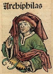 MAKE A MEME View Large Image Nuremberg chronicles - f 079r 1.png This is a part of a scan of an historical document Title Schedelsche Weltchronik or Nuremberg Chronicle Called Archiphilas this is probably meant to be the ancient Greek Platonist philosopher Arcesilaus ...