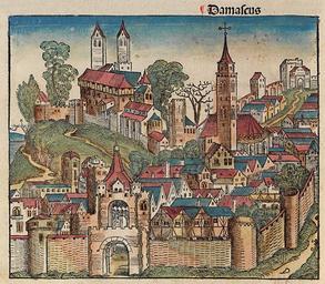 Keywords: Nuremberg chronicles - f 23v.png This is a part of a scan of an historical document Title Schedelsche Weltchronik or Nuremberg Chronicle own scan from original book language Latin 1493 Hartmann Schedel Out of copyright as author died more than 70 years ago PD-old Nuremberg Chronicle illustrations f 021-030 023v Nuremberg Chronicle Towns Damascus in the 1490s