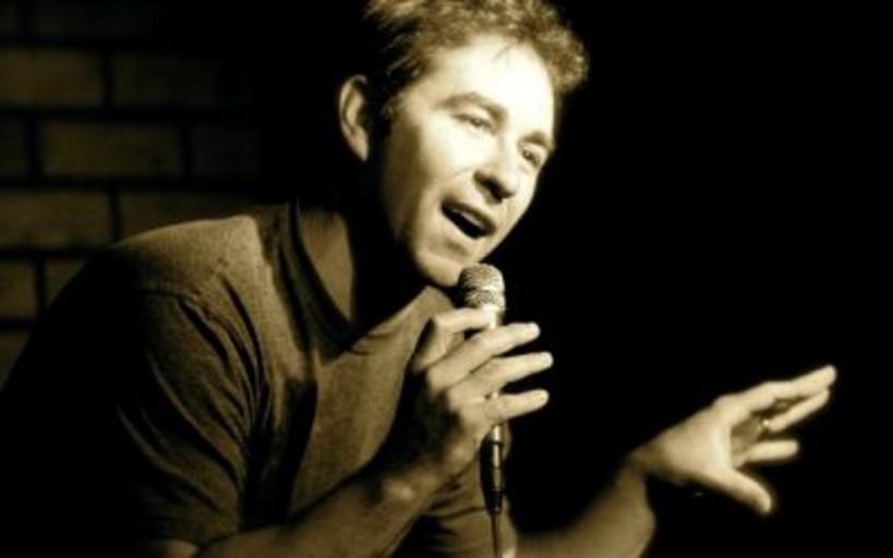Keywords: NYCC4 large.jpg en Matt Bellace performing at New York Comedy Club Own Mbellace Black and white photographic portraits of men Men with microphones Men facing right