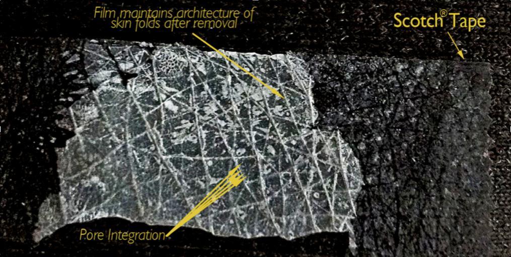 | Keywords: NYU Langone Core Microscopy Scarguard Nanofilm.png en Scarguard Nanofilm lifted off skin with Scotch® Tape Macrophotography shows biomechanical integration of the dry film into pores sweat glands and microscopic crevices of the skin 2014-05-15 14 10 09 NYU Core Microscopy Laboratory NYU Medical Center Alice Liang PhD cc-zero Uploaded with UploadWizard Check categories 2015 April 26 Scarguard | ||||