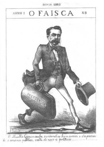 Keywords: O Faisca 1885.jpg Exemplar nº8 de O Faísca jornal que circulou na Bahia em 1885 A caricatura ilustra o Barão de Jeremoabo chefe político de fins do Império e começo da República CARVALHO Jr Álvaro Pinto Dantas O Barão de Jeremoabo e a Política de Seu Tempo Salvador 2006 ISBN 85-7505-147-4 1885 Author PD old 1885 newspapers Culture of Bahia Sent by André Koehne PD-old |