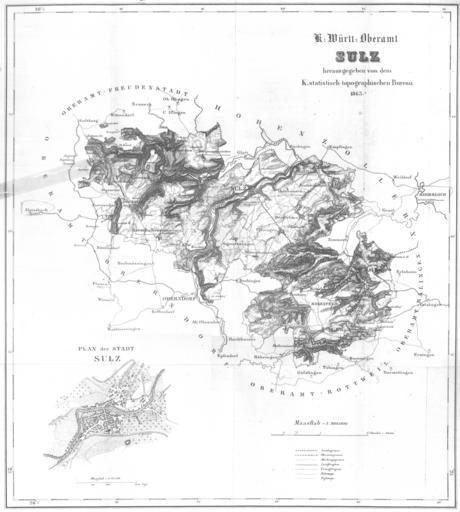 | Keywords: OAB Sulz Karte.jpg Beschreibung des Oberamts Sulz ed Statistisch-topographisches Bureau des Königreichs Württemberg Verlag Karl Aue Stuttgart 1863 <br /> Supplement Map of the district Oberamt scale 1 100000 Königlich statistisch-topographisches Bureau 1863 book scanned by uploader other versions PD-old Beschreibung des Oberamts Sulz Old maps of Baden-Württemberg |