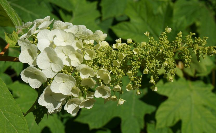 Keywords: oak leaf hydrangea hydrangea blossoms flower bloom plant garden spring nature leaves foliage