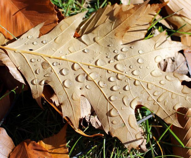 Keywords: oak leaf rain drops nature forest season autumn fall park leaves colorful wet outdoor fall leaves color golden september