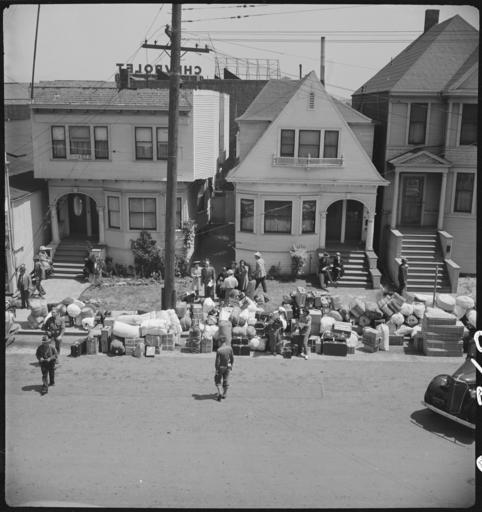 Keywords: Oakland, California. Baggage of evacuees of Japanese ancestry piled on the sidewalk. The Greyhound . . . - NARA - 537701.jpg Scope and content The full caption for this photograph reads Oakland California Baggage of evacuees of Japanese ancestry piled on the sidewalk The Greyhound buses will soon arrive to take this baggage as well as the evacuees to the Tanforan Assembly center under Civilian Exclusion Order Number 28 General notes 537701 Local identifier 210-G-C368 Department of the Interior War Relocation Authority 02/16/1944 - 06/30/1946 NARA-Author Lange Dorothea 1895-1965 Photographer 1372774 <br /> Still Picture Records Section Special Media Archives Services Division NWCS-S National Archives at College Park 8601 Adelphi Road College Park MD 20740-6001 1942-05-06 Record group Record Group 210 Records of the War Relocation Authority 1941 - 1989 Record group ARC 537 Central Photographic File of the War Relocation Authority compiled 1942 - 1945 Series ARC 536000 File unit File unit ARC Variant control numbers NAIL Control Number NWDNS-210-G-C368 Other versions <gallery> File Oakland _California _Baggage_of_evacuees_of_Japanese_ancestry_piled_on_the_sidewalk _The_Greyhound_ _ _ _-_NARA_-_537701 tif tif File Oakland _California _Baggage_of_evacuees_of_Japanese_ancestry_piled_on_the_sidewalk _The_Greyhound_ _ _ _-_NARA_-_537701 jpg jpg </gallery> NARA-cooperation PD-USGov Dorothea Lange Japanese American internment processing in Oakland |