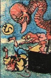 Keywords: Obake Karuta 2-11.jpg Card from the Japanese game obake karuta monster cards c early 19th century Each card features a monster from Japanese mythology and a character from the hiragana syllabary From http //www columbia edu/cu/ealac/dkc/calendar/godzilla/godzilla_exhibition_2 html here The creature depicted on this card is maybe a bakemono-tsuzura The hiragana character is ã‚ read as mu PD-Art Obake karuta Artworks missing infobox template |