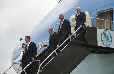 | Keywords: Obama Kennedy Space Center Visit DVIDS849419.jpg en President Barack Obama left exits of Air Force One with from left Representative US Representative Suzanne M Kosmas D - FL U S Senator Bill Nelson D-FL NASA Administrator Charles Bolden and Apollo 11 Astronaut Buzz Aldrin after landing at the NASA Kennedy Space Center in Cape Canaveral Fla on Thursday April 15 2010 Obama visited Kennedy to deliver remarks on the bold new course the administration is charting to maintain U S leadership in human space flight Photo Credit NASA/Bill Ingalls NASA Identifier 201004150002HQ 2010 Glenn Research Center https //www dvidshub net/image/849419 849419 2013-02-08 13 38 WASHINGTON D C US PD-USGov Barack Obama in 2010 Air Force One Images from DoD uploaded by Fæ Charles F Bolden Jr |