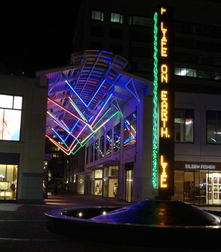 | Keywords: Obelisk&Riggings 1229wik.jpg en Light Obelisk Fountain and Light Riggings Arcade Wisconsin Place Bethesda MD/DC designed by Athena Tacha animated LEDs and RGBs 2001-09 in collaboration with Arrowstreet Inc Color Kinetics of Boston and Art Display Co of Washington DC photo Richard Spear own own work Atspear 2009 Site specific public art Athena Tacha |