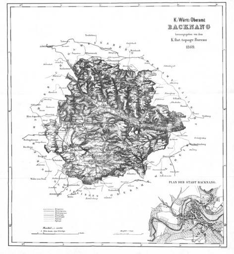 Keywords: Oberamt Backnang Karte.jpg de Beschreibung des Oberamts Backnang Scan from reprint Königlich statistisch-topographisches Bureau Württemberg 1871 PD-old Oberamt Backnang 19th-century maps of Baden-Württemberg 1871 maps