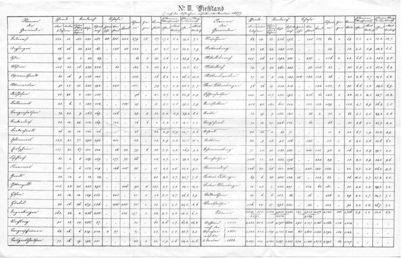 | Keywords: Oberamt Biberach Tabelle 3.jpg Dies ist ein Scan des Buches This is a scan of the book Beschreibung des Oberamts Biberach Cotta Stuttgart und Tübingen 1837 Scan der Faksimileausgabe Scan of the facsimile edition Bissinger Magstadt 1974 ISBN 3-7644-0013-7 1837 Prof Johann Daniel Georg von Memminger 1773-1840 PD-old Oberamt Biberach |