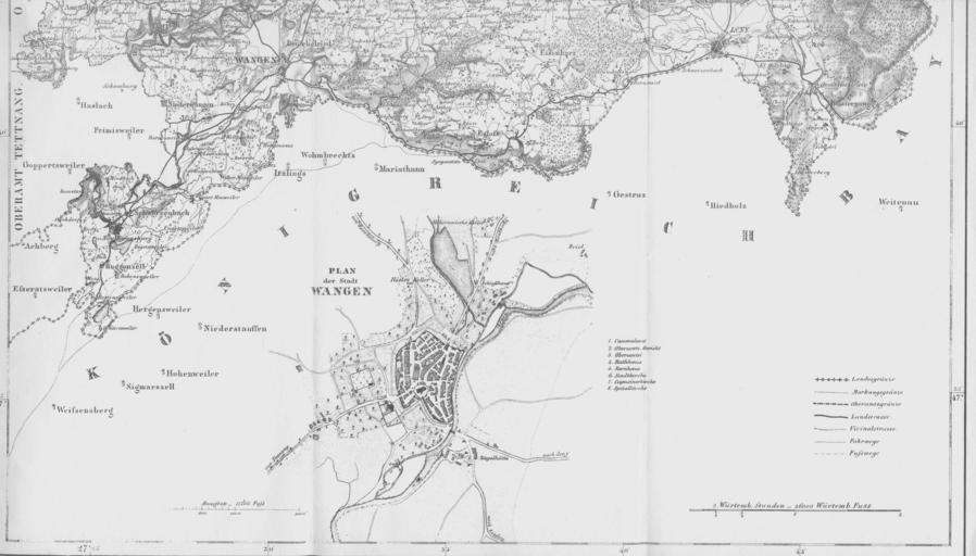 | Keywords: Oberamt Wangen Karte Teil 2.jpg en This is a scan of the book Beschreibung des Oberamts Wangen Cotta Stuttgart und Tübingen 1841 Wangen im Allgäu today part of Landkreis Ravensburg Baden-Württemberg de Dies ist ein Scan des Buches Beschreibung des Oberamts Wangen Cotta Stuttgart und Tübingen 1841 Wangen im Allgäu heute Teil des Landkreises Ravensburg Baden-Württemberg de Scan einer Faksimileausgabe Bissinger Magstadt 1982 ISBN 3-7644-0015-3 en Scan from facsimile edition Bissinger Magstadt 1982 ISBN 3-7644-0015-3 August Friedrich Pauly 1796 “1845 1841 PD-old Beschreibung des Oberamts Wangen Maps of Landkreis Ravensburg |