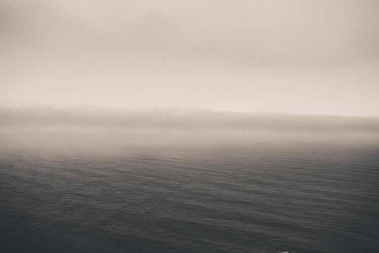 Keywords: ocean sea calm horizon blue foggy misty cloudy nebulous overcast clouded weather infinity grey sky fog haze hazy water ripples
