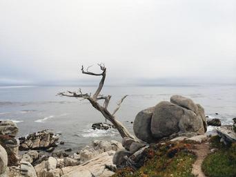 Keywords: ocean sea rocks stones wood water nature landscape coast shore seascape branches peaceful tranquil serene calm