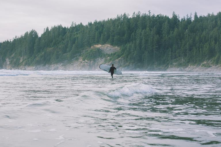 Keywords: ocean surf surfer board surfboard pine trees waves water sea surfing sport nature outdoor active surf board man adventure