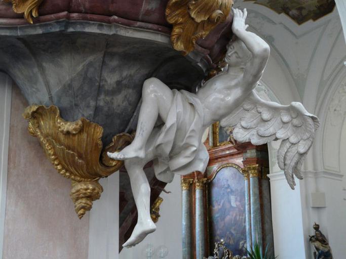 MAKE A MEME View Large Image Ochsenhausen klosterkirche 011 Pulpit.JPG Angel lifting the pulpit Former Abbey of Ochsenhausen Germany now parish church Ehemalige Reichsabtei Ochsenhausen ehemalige Klosterkirche jetzt Pfarrkirche St Georg self-photographed Mattana ...
