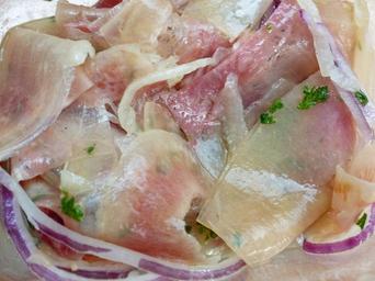 Keywords: ochsenmaulsalat meat salad mouth meat beef vinegar oil vinaigrette cured thin bite size slices white wine vinegar vegetable oil onions eat food meat spicy substantial