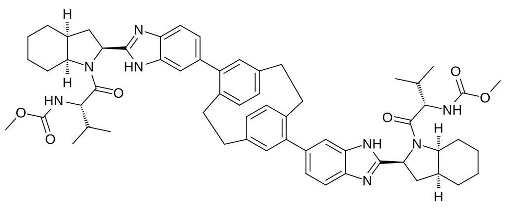 Keywords: Odalasvir.svg Chemical structure of odalasvir Own 11 10 5 March 2015 UTC Ed Edgar181 thumb left NS5A inhibitors Carbamates Cyclophanes Benzimidazoles Isopropyl compounds N N-disubstituted primary amides
