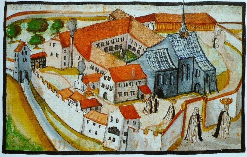 Keywords: Oetenbach Zürich 1520.jpg de Kloster Oetenbach um 1520 Die Geschichte des Kantons Zürich Band I Werd Verlag Zürich 1995 upload June 2010 unknown upload by Adrian Michael PD-old Kloster Oetenbach