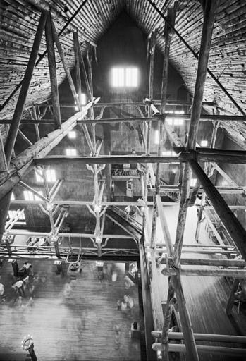 | Keywords: OF Inn view from Crowsnest HABS1.jpg en View from the Crowsnest platform at the top of the Old Faithful Inn's lobby Yellowstone National Park Wyoming USA http //memory loc gov/pnp/habshaer/wy/wy0000/wy0093/photos/174615pv jpg W S Keller HABS photographer 1931-03 PD-USGov-Interior-HABS 73000226 Old Faithful Inn |