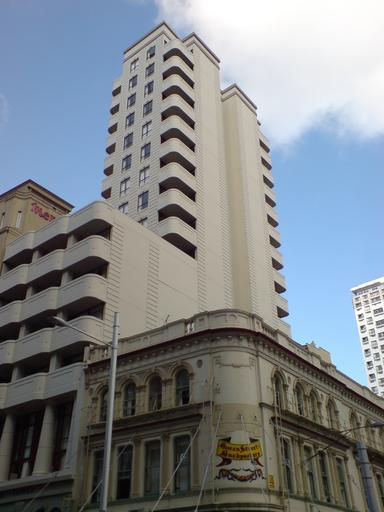 | Keywords: Office Block And Hostel Auckland.jpg An older apartment block and hostel on Queen Street Auckland City New Zealand The building in the foreground the former Imperial Hotel at 66 Queen Street corner Fort Street is listed with the New Zealand Historic Places Trust Register number NZHPT 4593 4593 self-photographed 2007-11 Uploader -36 845798 174 766219 Photos taken by Ingolfson Apartment buildings in Auckland Skyscrapers in Auckland Hostels in New Zealand Auckland CBD Balconies in New Zealand NZHPT Category II listings in the Auckland Region Built in New Zealand in 1883 Hotels in Auckland 2007 in New Zealand Curved buildings in New Zealand |