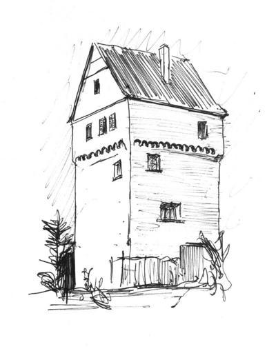 Keywords: Oflings Burgturm.jpg de Burg Oflings eigenhändige Zeichnung nach einer Photographie own Andreas Rockstein ca 1985 Drawings of castles in Baden-Württemberg Burg Oflings Castle towers in Germany