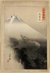 Keywords: Ogata Gekko - Ryu sho ten.png Ryu sho ten or Ryu shoten Dragon rising to the heavens also known as Gekko Zuihitsu Gekko's Sketch a Ukiyo-e print from Ogata Gekko's Views of Mt Fuji A dragon rises out of the lake near Mt Fuji ascending towards the sky The text on the left hand side is in an archaic form of Japanese writing that includes characters not in common use any more A partial translation with the still-unknown symbols marked with s follows Printed on Nov 1st 30 of Meiji 1897 published on April 5th by yoshi Matsumoto who lives 2 Yoshikawa town Nihonbashi ward Thanks to 利用 子守歌 Ceridwen and Tonbi-ko for translation help jpd 01559 1897 Published 1898 Creator Ogata Gekko The restorationist lives in Britain where sweat-of-brow is sufficient to gain a new copyright Hence User Adam Cuerden Adam Cuerden For the original PD-Old Image Ogata Gekko - Ryu_sho_ten jpg - A lossier JPEG version of this image with a somewhat tighter crop that I thought might suit it well in articles Image Ogata Gekko - Ryu_sho_ten unrestored png - The unrestored original merely converted from TIFF to PNG levels adjustment dirt removal etc some fixing of tears around the edge of the image though not extensive - I felt that a few signs of age work well in something like this Mount Fuji in art Prints of dragons Ogata Gekko 1897 in art 1898 in art |