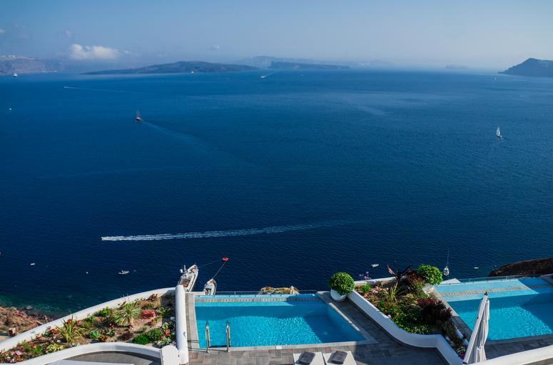Keywords: oia santorini greece view pool architecture travel island sea landscape aegean blue white sky summer beautiful nature mediterranean europe resort romantic building holiday tourism greek vacation