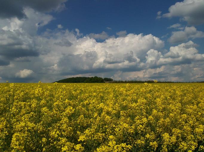 Keywords: oilseed rape field yellow landscape sky clouds rape blossom rare plant agriculture