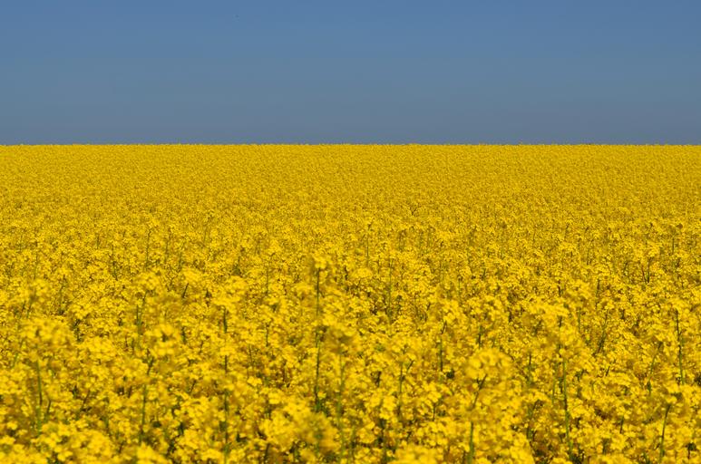 Keywords: oilseed rape sky field of rapeseeds yellow landscape summer nature plant blue spring field rapeseed oil rape blossom arable field of flowers inflorescence view blue sky crop