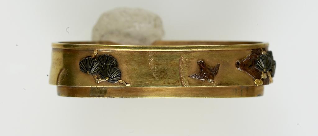 Keywords: Okada Setsuga - Fuchi with Bird in Flight - Walters 5112912a - Back.jpg A black bird is shown in flight near a tree branch This is part of a mounted set between 1854 1925 Meiji-Taisho gold shakudo silver copper sentoku cm 3 7 accession number 51 1291 2a 18244 William T / Henry Walters Collection Baltimore date and mode of acquisition unknown Walters Art Museum Henry Walters Acquired by William T or Henry Walters Signature Tôkôsai Setsuga place of origin Tokyo Japan PD-Japan Fuchi in the Walters Art Museum Okada Setsuga Media contributed by the Walters Art Museum needs category review |