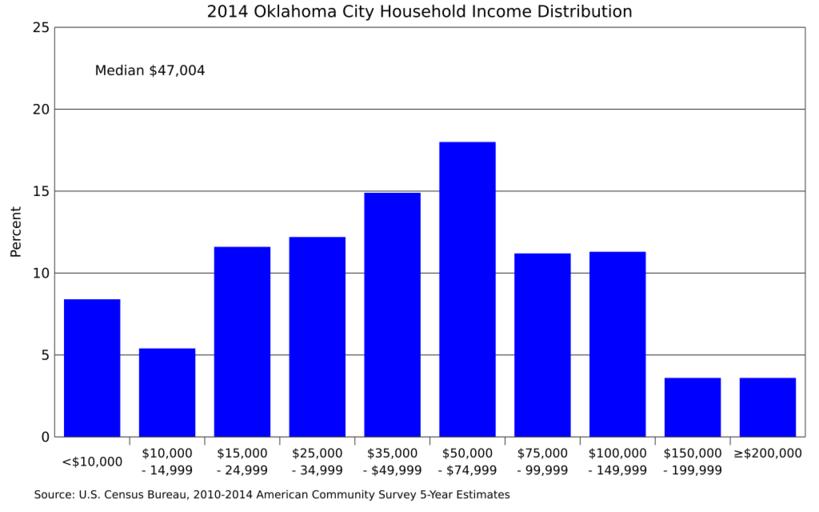 Keywords: Oklahoma City household income distribution.svg translate yes en Distribution of household income in Oklahoma City Data from http //factfinder census gov/bkmk/table/1 0/en/ACS/14_5YR/DP03/1600000US4055000 US Census in 2014 inflation adjusted dollars 2016-06-02 own Delphi234 other versions cc-zero Income distribution in the United States Oklahoma City |
