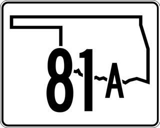 Keywords: Oklahoma State Highway 81A.svg An Oklahoma State Highway 81A shield made to the specifications of the http //www okladot state ok us/traffic/traffic99/pdfs/t035e pdf sign detail Uses the http //www triskele com/fonts/index html Roadgeek 2005 fonts United States law does not permit the copyrighting of typeface designs and the fonts are meant to be copies of a U S Government-produced work anyway The outside border has a width of 1 1/16 in and a color of black so it shows up; in reality signs have no outside border own 2013-01-16 Fredddie Oklahoma State Highway shields 0081A |