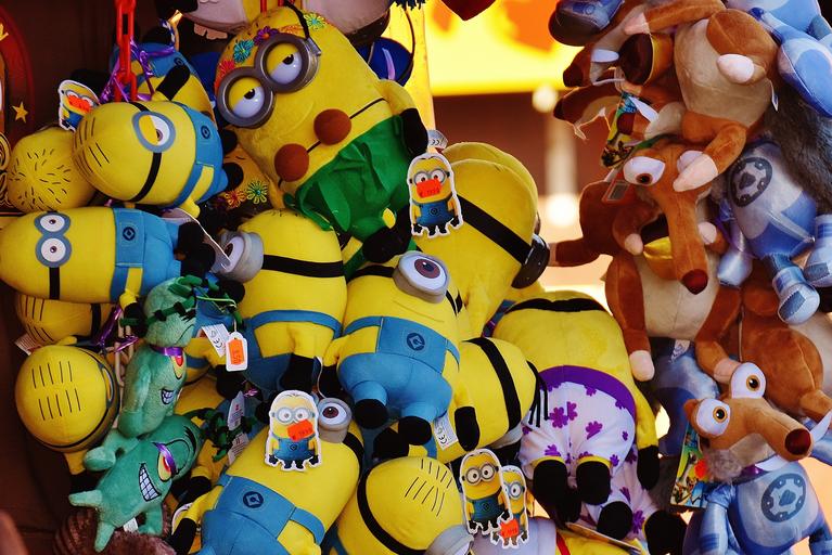 Keywords: oktoberfest stand minions plush toys sales stand stuffed animal cute plush funny fig fun toys children toys cuddly teddy bear folk festival year market hustle and bustle fair children play colorful