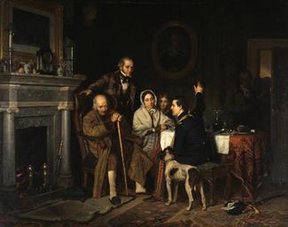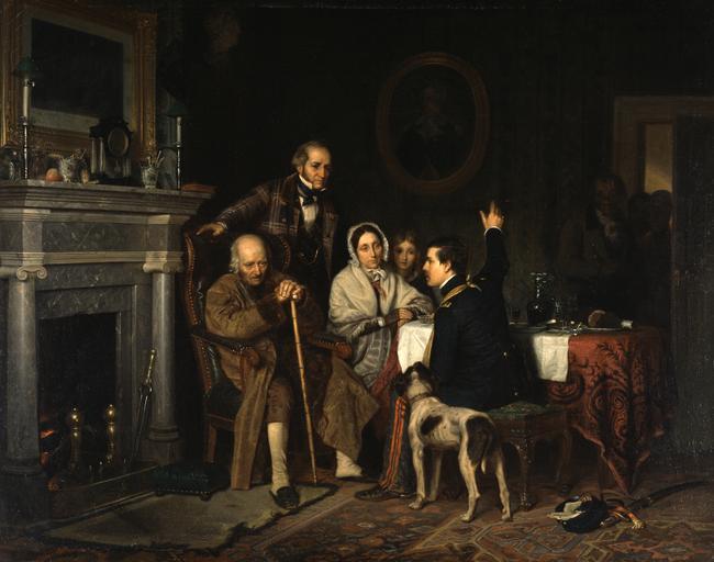 Keywords: Old 76 and Young 48.jpg en A young officer recounts his experiences in the Mexican War of 1848 to a veteran of the American Revolution The persons represented are members of the artist's family the old man is his great-uncle Richard Caton; his mother and father appear as the middle-aged couple his elder sister as the young lady and his brothers as the officers Discernible on the walls of the Baltimore parlor are a portrait of George Washington by Rembrandt Peale and an engraving of John Trumbull's Signing of the Declaration of Independence ca 1776 1849 The Walters Art Museum Creator Richard Caton Woodville PD-old-100 PD-old-100 PD-US Richard Caton Woodville Collections of the Walters Art Museum 1849 paintings People in rooms in art Uploaded with UploadWizard Template artwork possible