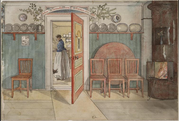 | Keywords: Old Anna. From A Home (26 watercolours) (Carl Larsson) - Nationalmuseum - 24205.tif Artwork Creator Carl Larsson Old Anna From A Home 26 watercolours Carl and Karin Larsson combined new design with old traditions Practicality dictated their interior design but it was equally important that furniture and objects form an attractive harmony This ideal was also propagated by others including Ellen Key who advocated homes that were in a new and light style in her essay Skönhet för alla Beauty for All in 1899 The Larssons moved to Lilla Hyttnäs a house in Sundborn in the summer of 1889 Here Carl and Karin together created the interiors that made their home famous Karin designed the furniture and textiles which she embroidered and wove A studio was fitted up in one of the hallways It features many eye-catching details including the funny man crowning a column When a larger studio extension was added this room became a workshop for the whole family The interiors of the Larsson home were characterised by rural simplicity Nevertheless every detail was carefully designed with influences from England Scotland and Japan The kitchen which was first and foremost a place for household chores did not display the same modern interior style and comfort as the rest of the house Hos Carl och Karin Larsson möttes ett nytt formspråk och gammal tradition De praktiska ändamålen styrde inredningen men lika viktigt var att möblerna och föremålen samspelade i en harmoni Dessa idéer förespråkades också till exempel av Ellen Key Hon pläderade för nya och ljusa hem i sin uppsats Skönhet för alla från 1899 Larssons flyttade till huset Lilla Hyttnäs i Sundborn sommaren 1889 Carl och Karin skulle där tillsammans skapa den inredning som gjorde hemmet berömt Karin formgav både möbler och textilier som hon broderade och vävde En av tamburerna inreddes tidigt till ateljé Där finns rikligt av iögonfallande detaljer till exempel den lustige figuren på krönet till stolpen När en större ateljé byggdes blev detta rum en verkstad för hela familjen Inredningarna i det Larssonska hemmet gav sken av en lantlig enkelhet Samtidigt var allt noga genomtänkt och influenserna hämtades bland annat från England Skottland och Japan Köket som främst var en plats för hushållsarbete och matlagning hade dock inte samma moderna inredningsstil och bekvämlighet som de övriga rummen header Carl and Karin Larsson combined new design with old traditions Practicality dictated their interior design but it was equally important that furniture and objects form an attractive harmony This ideal was also propagated by others including Ellen Key who advocated homes that were in a new and light style in her essay Skönhet för alla Beauty for All in 1899 The Larssons moved to Lilla Hyttnäs a house in Sundborn in the summer of 1889 Here Carl and Karin together created the interiors that made their home famous Karin designed the furniture and textiles which she embroidered and wove A studio was fitted up in one of the hallways It features many eye-catching details including the funny man crowning a column When a larger studio extension was added this room became a workshop for the whole family The interiors of the Larsson home were characterised by rural simplicity Nevertheless every detail was carefully designed with influences from England Scotland and Japan The kitchen which was first and foremost a place for household chores did not display the same modern interior style and comfort as the rest of the house Hos Carl och Karin Larsson möttes ett nytt formspråk och gammal tradition De praktiska ändamålen styrde inredningen men lika viktigt var att möblerna och föremålen samspelade i en harmoni Dessa idéer förespråkades också till exempel av Ellen Key Hon pläderade för nya och ljusa hem i sin uppsats Skönhet för alla från 1899 Larssons flyttade till huset Lilla Hyttnäs i Sundborn sommaren 1889 Carl och Karin skulle där tillsammans skapa den inredning som gjorde hemmet berömt Karin formgav både möbler och textilier som hon broderade och vävde En av tamburerna inreddes tidigt till ateljé Där finns rikligt av iögonfallande detaljer till exempel den lustige figuren på krönet till stolpen När en större ateljé byggdes blev detta rum en verkstad för hela familjen Inredningarna i det Larssonska hemmet gav sken av en lantlig enkelhet Samtidigt var allt noga genomtänkt och influenserna hämtades bland annat från England Skottland och Japan Köket som främst var en plats för hushållsarbete och matlagning hade dock inte samma moderna inredningsstil och bekvämlighet som de övriga rummen date Akvarell Glasad Size cm 43 32 Framed Size cm 52 38 2 Institution Nationalmuseum Stockholm Signerad C L monogram accession number 24205 NMB 264 place of creation Erik Cornelius / Nationalmuseum Nationalmuseum Stockholm cooperation project Licensed-PD-Art PD-old-auto PD-Nationalmuseum_Stockholm 1919 Media contributed by Nationalmuseum Stockholm 2016-10 Paintings in the Nationalmuseum Stockholm Paintings by Carl Larsson |