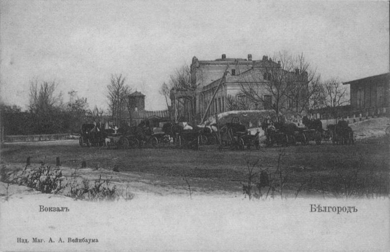 Keywords: Old Belgorod Train Station Square.jpg en Belgorod Train Station Square in the beginning of XX century Cabs waiting passengers from train station ru П ивокзальная площадь станции Белго од в начале XX века Извозчики ожидают пассажи ов у вокзала Old postcard до еволюционная отк ытка scanned from book отскани овано из книги Донченко Ю В Ку ская губе ния на ста ой отк ытке изд Ку ский областной комитет госуда ственной статистики Ку ск 2004 ISBN 5-901958-02-2 Издание магазина А А Вейнбаума Акц Общество Г анбе гъ в Стокгольме ~ 1904 Belgorod Train Station Postcards of Kursk Governorate 1904 in Belgorod PD-Art