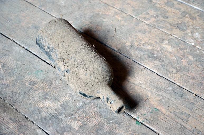 Keywords: old bottle vintage grey dust aged dusty glass wooden floor