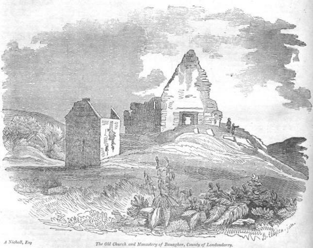 | Keywords: Old Church of Banagher, County of Londonderry.jpg Engraving entitled 'The Old Church and Monastery of Banagher County of Londonderry' The Dublin Penny Journal dated May 25 1833 1833 or earlier A Nicholl first half of the 19th century age see licence PD-old en wikipedia Banagher _County_Londonderry Churches in County Londonderry Towns and villages in County Londonderry Northern Ireland in the 19th century | ||||