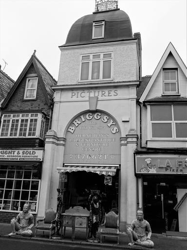 Keywords: herne bay herne bay hernebay cinema blackandwhite monochrome outdoor architecture building black and white Briggsy’s occupies the only purpose built commercial premises for entertainment within the core of the town (other than pubs etc). It was erected about 1899 as the Washington Arcade, running through to Mortimer Street. In 1911 it became the ‘Cinema de Luxe’ and in 1912 was further altered, probably achieving its present form. It has long since ceased to show films. The design involves a central entrance with a ‘feature’ tower above, with, to each side, pairs of steeply gabled two storey houses with shops on the ground floor. All these features survive but in a mutilated condition. The body of the cinema also survives, to the rear. The cinema entrance with its tower and cupola is an important visual ‘incident’ on the High Street. Briggsy’s occupies the only purpose built commercial premises for entertainment within the core of the town (other than pubs etc). It was erected about 1899 as the Washington Arcade, running through to Mortimer Street. In 1911 it became the ‘Cinema de Luxe’ and in 1912 was further altered, probably achieving its present form. It has long since ceased to show films. The design involves a central entrance with a ‘feature’ tower above, with, to each side, pairs of steeply gabled two storey houses with shops on the ground floor. All these features survive but in a mutilated condition. The body of the cinema also survives, to the rear. The cinema entrance with its tower and cupola is an important visual ‘incident’ on the High Street. |