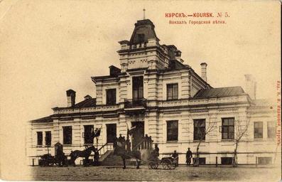 Keywords: Old Kursk II Train Station 3.jpg en Kursk City Train Station Kursk II in the beginning of the XX century before expanding attic storey ru Го одской вокзал Ку ска Ку ск II в начале XX века до асши ения мезонина У подъезда в ожидании пассажи ов стоят извозчикию Здание до настоящего в емени не сох анилось Old Postcard до еволюционная отк ытка <br>Digital copy downloaded from book циф овая копия заг ужена из книги «В И Скля ук Ф Логачев Ю В Озе ов Ста ые Ку ские Отк ытки Каталог иллюст и ованных почтовых ка точек 1899 1930 годов с объяснением видов го ода Ку ск 2005 г ISBN 5-86354-106-7» http //www old kurskcity ru/book/post-cart/page43 html ст аница 43 Publisher издатель Издательство К И Ивановой Ку ск Тип Ше е абгольц и КО Ге б малый 1901 PD-Old Kursk-Vetka Kursk on postcards of the Russian Empire Scherer and Nabholz