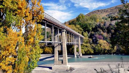| Keywords: lower shotover bridge lowershotoverbridge queenstown new zealand newzealand river autunm fall scenery landscape' landscape public domain dedication (cc0) publicdomaindedicationcc0 geo tagged geotagged free photos freephotos outdoor Situated 10 kilometres from Queenstown (off highway 6), the Old Lower Shotover Bridge was built in 1871 and offers foot traffic eye-catching 360 panoramic views of the Shotover River. The original bridge was washed away in 1878 by flooding but rebuilt by the Public Works Department and re-opened in 1915. The bridge is172 metres long and stands16 metres from bridge to the river below. Foot traffic can enjoy panoramic views of the Shotover River and surrounding mountains including the Remarkables Double Cone Peak (2319m), Cecil Peak (1978m), Coronet Peak (1651m) and Brow Peak (1456m). The bridge also acts as a viewing platform for the commercial jet boat trips that pass underneath, taking passengers on thrilling sightseeing trips. K-Jet operate from the Marine Parade area in Queenstown and offer one hour jet boat rides along both the Kawarau and Shotover Rivers and under the bridge to give you a different view of this iconic structure. Situated 10 kilometres from Queenstown (off highway 6), the Old Lower Shotover Bridge was built in 1871 and offers foot traffic eye-catching 360 panoramic views of the Shotover River. The original bridge was washed away in 1878 by flooding but rebuilt by the Public Works Department and re-opened in 1915. The bridge is172 metres long and stands16 metres from bridge to the river below. Foot traffic can enjoy panoramic views of the Shotover River and surrounding mountains including the Remarkables Double Cone Peak (2319m), Cecil Peak (1978m), Coronet Peak (1651m) and Brow Peak (1456m). The bridge also acts as a viewing platform for the commercial jet boat trips that pass underneath, taking passengers on thrilling sightseeing trips. K-Jet operate from the Marine Parade area in Queenstown and offer one hour jet boat rides along both the Kawarau and Shotover Rivers and under the bridge to give you a different view of this iconic structure. |