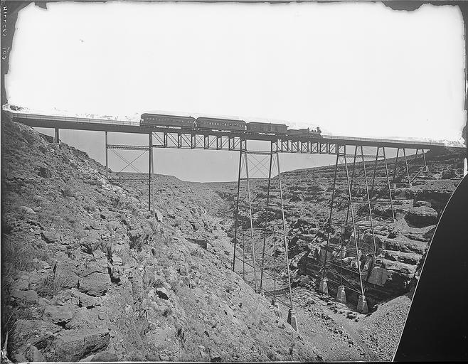| Keywords: (Old No. 139) Santa Fe Railroad bridge over Canyon Diablo, Arizona, showing train and signs of - NARA - 517782.jpg Scope and content General notes 517782 Local identifier 57-PS-109 War Department Office of the Chief of Engineers Powell Survey 1869 - ca 1874 NARA-Author Beaman E O Elias Olcott 1837-1876 Photographer 8464436 <br/> Fennemore James 1849-1941 Photographer 8464442 <br/> Hillers John K 1843-1925 Photographer 3028457 National Archives at College Park - Still Pictures RD-DC-S National Archives at College Park 8601 Adelphi Road College Park MD 20740-6001 1871 - 1878 Record group Record Group 57 Records of the U S Geological Survey 1839 - 2008 Record group ARC 386 Photographs taken by John K Hillers during the Powell Survey and other Geological Surveys compiled ca 1879 - ca 1900 Series ARC 517734 File unit File unit ARC Variant control numbers NAIL Control Number NWDNS-57-PS-109 Other versions <gallery> File Old No 139 Santa Fe Railroad bridge over Canyon Diablo Arizona showing train and signs of - NARA - 517782 tif This page as TIFF File Old No 139 Santa Fe Railroad bridge over Canyon Diablo Arizona showing train and signs of - NARA - 517782 jpg This page as JPG </gallery> Other pages NARA-cooperation PD-USGov Atchison Topeka and Santa Fe Railway Railway bridges in Arizona Canyon Diablo |