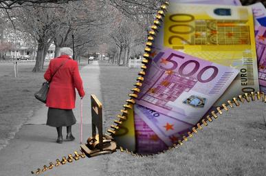 Keywords: old people pensioners pension money currency euro cash and cash equivalents bank note money coins pension increase pension reform old-age pension germany