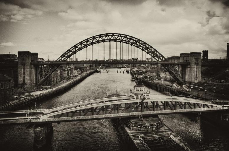 Keywords: old vintage sepia tyne bridge swing bridge retro toned old fashioned old photo newcastle uk tyneside