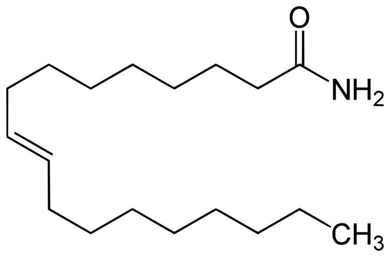 Keywords: Oleamide trans.svg oleamide; elaidic acid amide Oleamid; Elaidinsäureamid own Yikrazuul 11 11 08 Fatty acid amides Lipids
